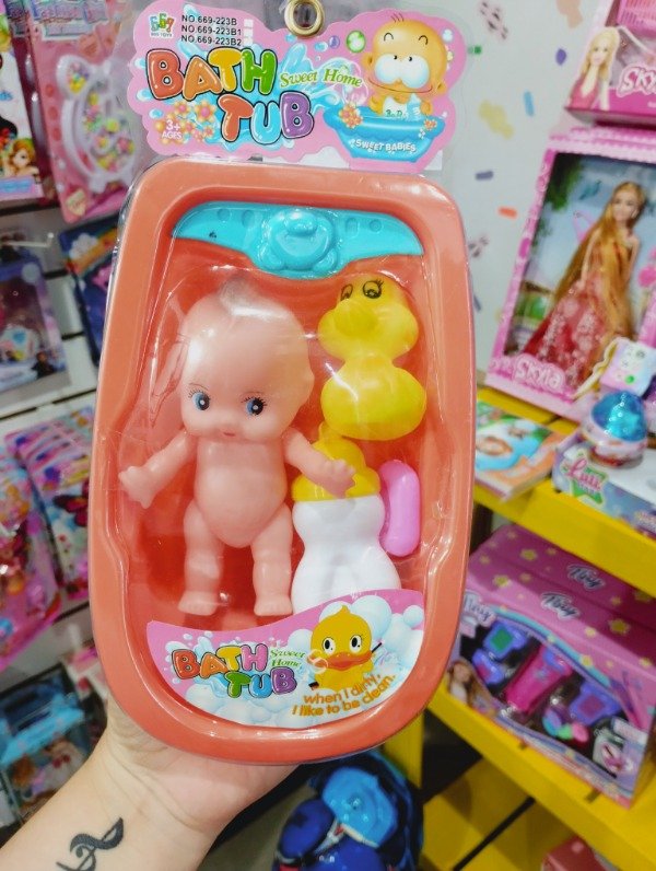 Bebe con bañera y accesorios