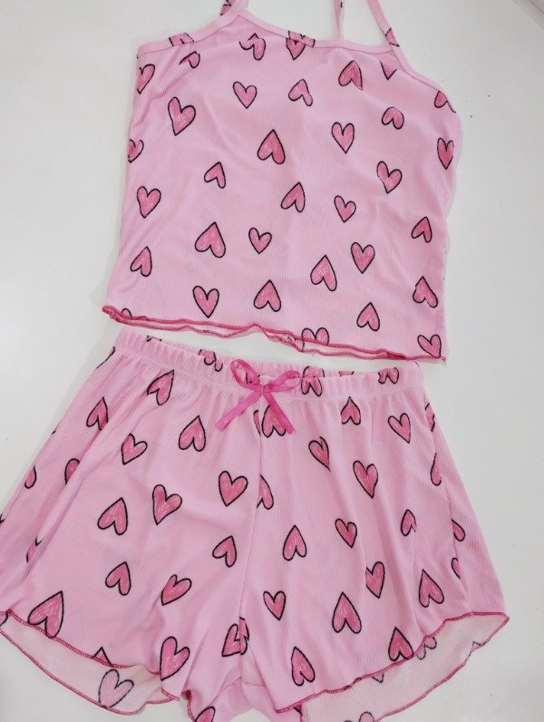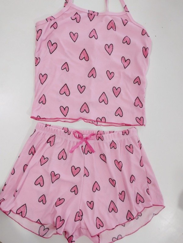 Pijama rosa con corazones talle 3(42)